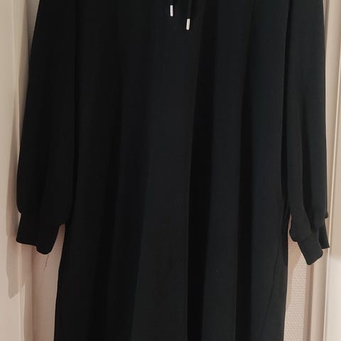 Nanso naisten arkimekko, koko XL. Mekko on beige-valkoraidallinen ja valmistettu puuvillasta. Malli on väljä ja suora, jossa on pitkähköt hihat ja pyöreä pääntie. Edessä on kaksi paikkataskua.