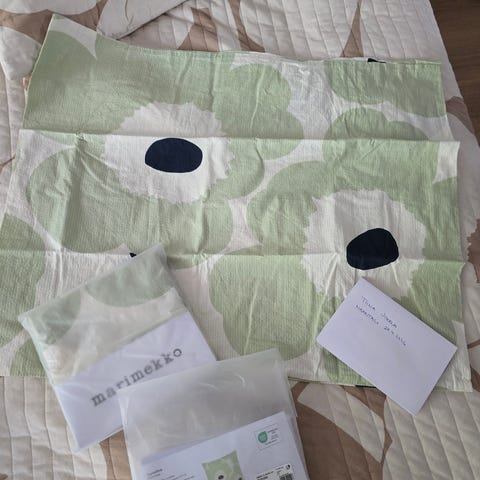 Käyttämätön Marimekon Unikko-koristetyynynpäällinen.