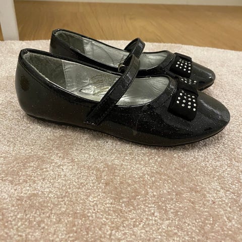 Myydään lasten kultaiset juhlakengät kokoa 31. Kengät hyvässä kunnossa. Kengissä edessä hieno koristeellinen rusetti.