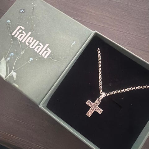 Kalevala Korun valmistama Illusioni-risti. Hopeaa. Oiva Rippiristi tulevalle rippiläiselle :)