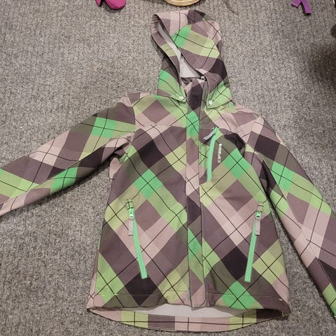 Hihat softshelliä ja keskusta kevyesti vanutettu. Vastaa kokoa 134. Kuvassa heijastumaa, oikeasti väri tasainen. Hinta 5 euroa.