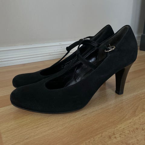 Myydään ainoastaan pari kertaa käytetyt, kuin uudet mustat nahkaiset Gabor-merkkiset leveäkorkoiset korkokengät. Koko 5,5. Koron korkeus 5,5cm. Hyvät jalassa, koko osoittautui vain itselle liian pieneksi.