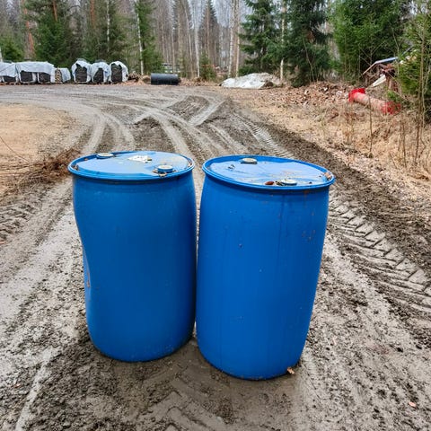 Vettä kuljetettu kasvimaalle,ei ole enää käyttöä. Pohja on ruskea ruosteesta joka on tarttunut traktorin kärristä.ei siis ole laho...