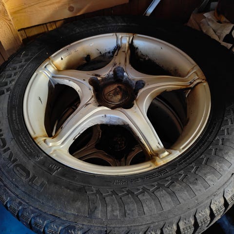 Katsotaan jos tämmöiset vanteet laittaisin vaihtoon sellaisiin mitkä itseäni miellyttävät,en myy koska ovat auton ainoat vanteet. Kyseessä siis Garson D.A.D Zuenglein 109 vanteet,erikoisen ja hienon näköiset on. En tiedä onko suomessa edes samanlaisia kellää,jos on,niin ei ainakaan kovin yleiset jos haluaa erilaista ilmettä. Vanteissa on hapettuma jälkiä,parissa vähemmän ja parissa vähän enemmän,kuvissa on vielä likaiset. Yhdessä vanteessa tota pientä naarmua/kolhua reunassa pikkaisen,muuten siistit,eli lähinnä hapettumat kun saisi poistettua niin olisi hienot. Itse en vielä tiedä jaksanko innostua sen työn teettämiseen. Vanteissa on soviterenkaat,eli keskireikä isompi kuin tuo 60.1 ,en aivan varma mikä. Viime kesänä tasapainoitettu ja renkaat on hyvät,sisäreunasta vähän kuluneet mutta ei tarvetta alkaa uusia ostamaan tälle kesälle