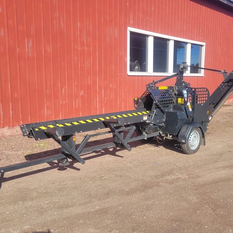 Pieni muistaakseni AL-KO merkkinen klapikone. Noin kolme vuotta vanha ja pilkottu noin 20 m3 klapeja. Mitään vikaa ei ole ilmennyt ja sivusuojat yms. (häkki) vielä alkuperäisissä muoveissa käyttämättömänä.