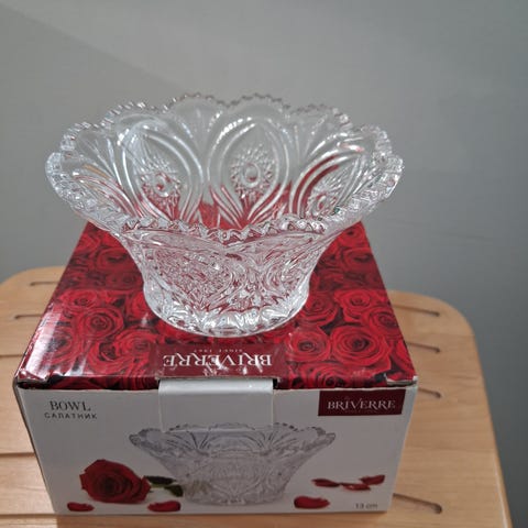 Vanha, kaunis ja koristeellinen jalallinen lasikulho.