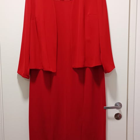 Myydään punainen jakku, koko 40-42. (Jakussa lukee 46, mutta vastaa kokoa 40-42). Merkki Manori Studio Mody. Materiaali 60% polyester 40% viskoosi.