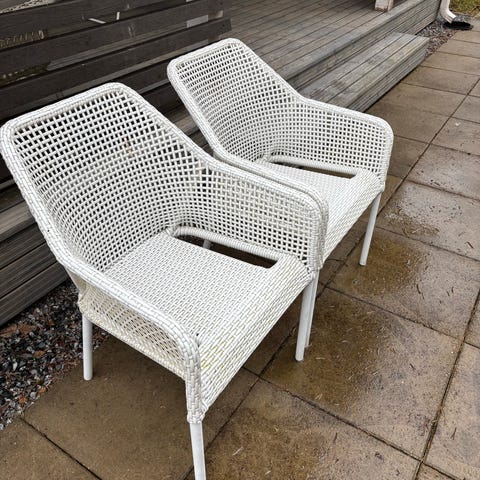 Polyrottinkinen riipputuoli parvekkeelle tai terassille. Tuolissa on musta polyrottinkipunos ja metallirunko. Istuinosassa on vaalea, pyöreä pehmuste. Tuoli on munanmuotoinen ja ripustettu jalustaan kiinnitettynä tai voi laittaa vaikka katosta roikkumaan kestävällä köydellä/narulla.
