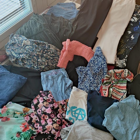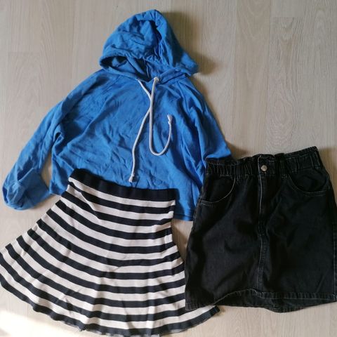 36-38 kokoiselle sekä flair että pillimallisia. Kolmet farkkusortsit ja paitoja hajakokoja. Paidat ja kylpytakin saa kaupanpäälle.