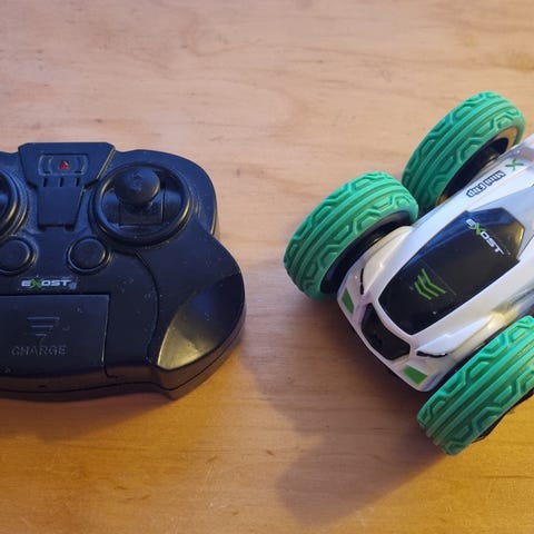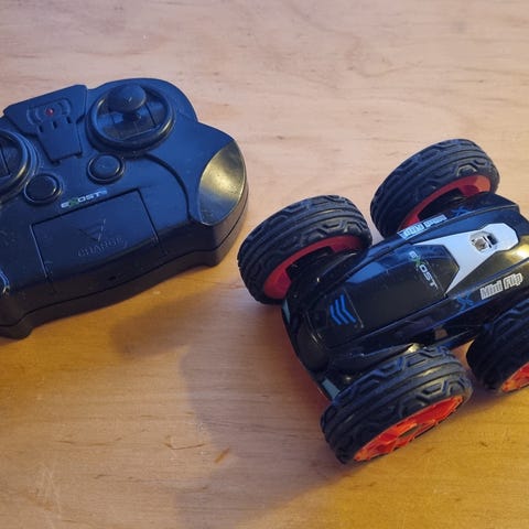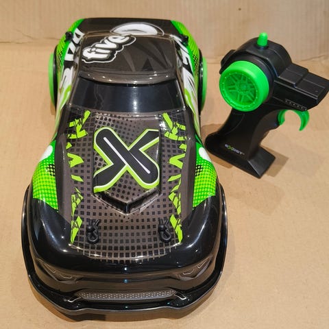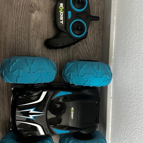 Silverlit Exost Aqua Cyclone Radio-ohjattava ajoneuvo. Kulkee sekä maalla että vedessä. Maksiminopeus 5 km / h. Auto täysin ehjä, käytönjälkeä havaittavissa. Eli kaikki toiminnot toimivat autossa ja ohjaimessa. Auto ja kauko-ohjain toimivat AAA-paristoilla (ei mukana)