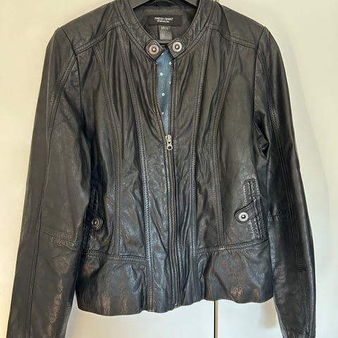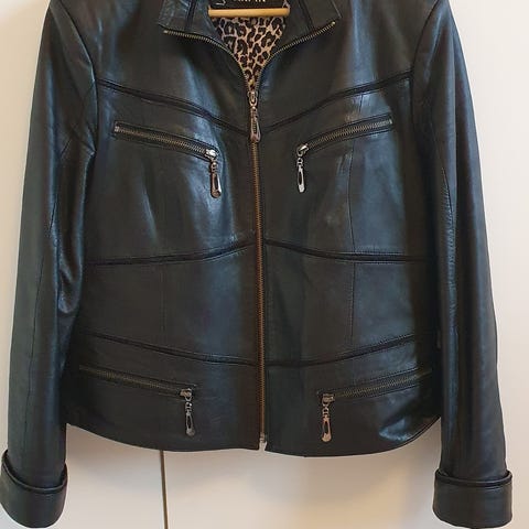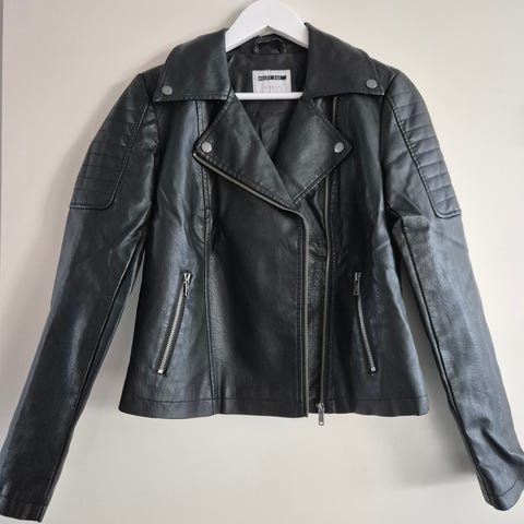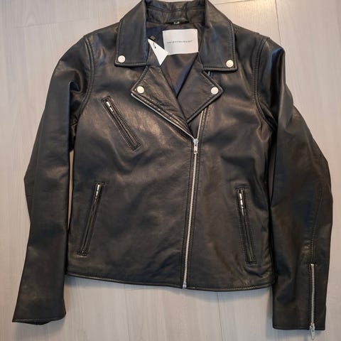 Ikoninen, aikaa kestävä biker-mallinen musta nahkatakki.