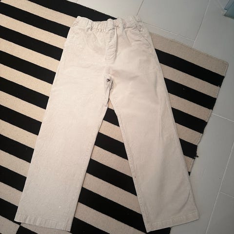 Uudet Lindexin beiget vakosamettihousut leveällä leikkauksella ja normaalilla vyötäröllä.