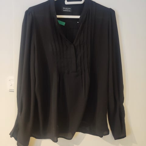 Myydään Selected femmen musta paita pitkillä hihoilla. Helmassa ja hihansuissa kauniit pienet rypytykset. Koko L. Ehjä sekä siisti. Joustava kangas.