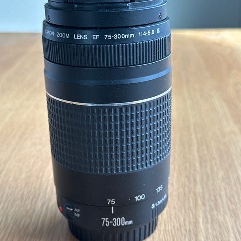 Canon zoom lens EF 75-300mm. sopii Canon EF -kiinnityksen järjestelmäkameroihin. Objektiivissa etu- ja takasuoja. Soveltuu esimerkiksi kaukana olevien kohteiden, luonnon ja urheilun kuvaamiseen. Hyvässä kunnossa. Vain nouto oulusta.