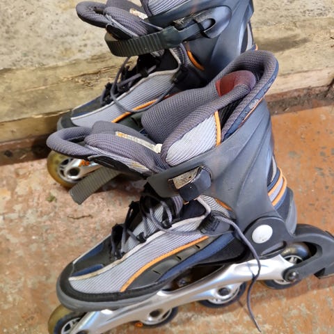 Roxa rullaluistimet, koko 40. Väri pääosin musta, yksityiskohtia valkoisella ja harmaalla. Kengän rakenne on tukeva, jossa nauhat ja tarrakiristys jalan tukemiseen. Kuori on kovamuovia ja sisäkenkä pehmustettu. Rullissa Roxa-merkkiset 76 mm 78A -renkaat ja ABEC 13 -laakerit. Soveltuvat rullaluisteluun esimerkiksi vapaa-ajan liikuntaan tasaisilla alustoilla.