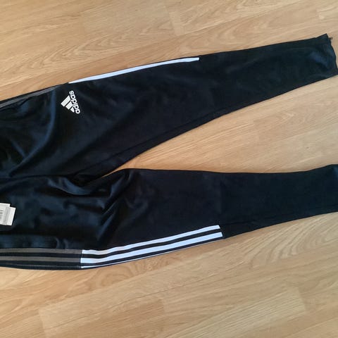 Siniset käyttämättömät verryttelyhousut kulkeutuvat lähikuntiin, myös posteilla.