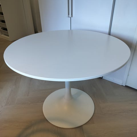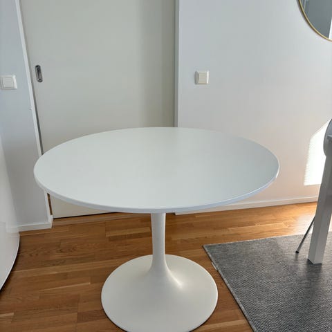 Myydään valkoinen Ikean Docksta ruokapöytä. Pyöreä, halkaisija 103 cm. Kunto erinomainen. Vain nouto, pöytälevyn saa irroitettua kuljetuksen ajaksi.