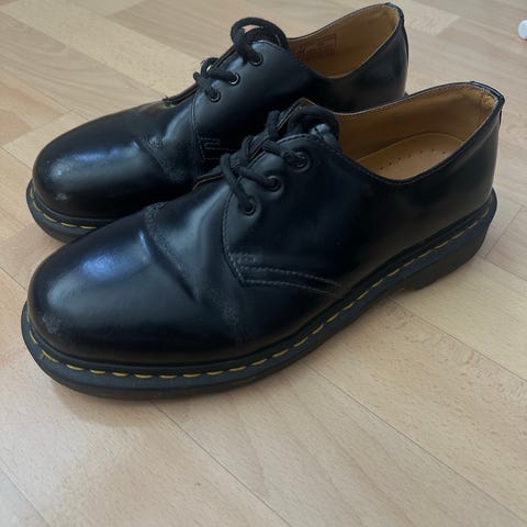 Dr. Martens nahkakengät, koko 42. Mustat nauhalliset kengät. Englannissa tehdyt. Sopivat noin 41.5 jalalle