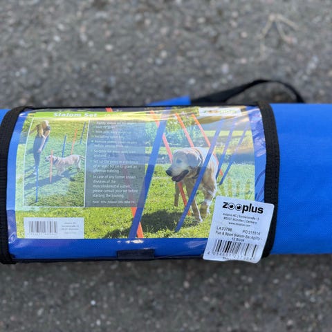 Zooplus Agility Fun & Sport koiran agilitysetti. Settiin kuuluu hyppykehä, pujottelukeppisetti ja tunneli koiralle. Tuotteet on tarkoitettu koiran aktivointiin ja liikunnan lisäämiseen pihalla tai muulla sopivalla alueella. Soveltuu erikokoisille koirille omistajan valvonnassa käytettäväksi. Materiaali on kevyttä ja koiraharrastukseen suunniteltua, ja osat voidaan koota ja purkaa harjoittelun mukaan. Pujottelukeppien korkeus 116 cm. Ei voi lähettää edes isona pakettina.