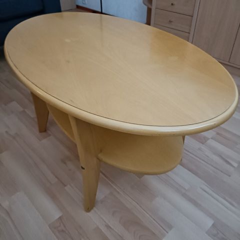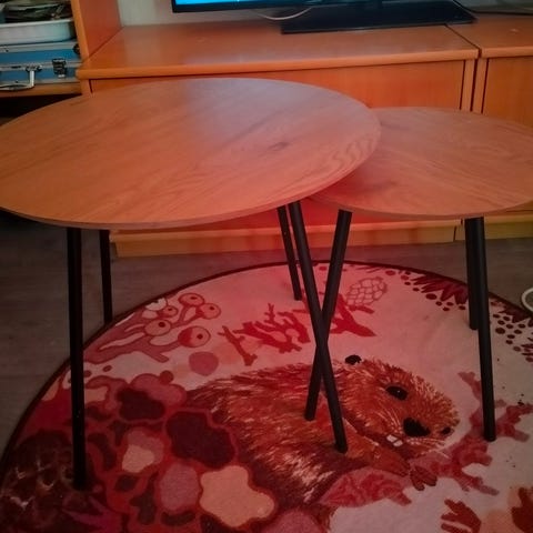Jyskistä ostettu kevyt pikkupöytä.Käytönjälkiä (eli naarmuja) on jos valoa vasten katsoo tarkkaan ja yhdessä kulmassa jyrsimisjälkeä,jäljet on huomioitu hinnassa.
