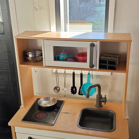 Myydään Lidlistä jokunen vuosi sitten ostettu puinen leikkikeittiö sekä astiat ym. tarvikkeet