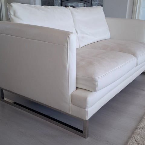 Jotai käytönjälkeä löytyy sohvan sivusta sekä istuin osan keskeltä.