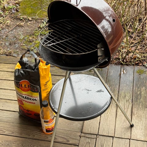 Matkagrilli, puu tai hiili käyttöön. Tällä grillaat hyvin makkaroita