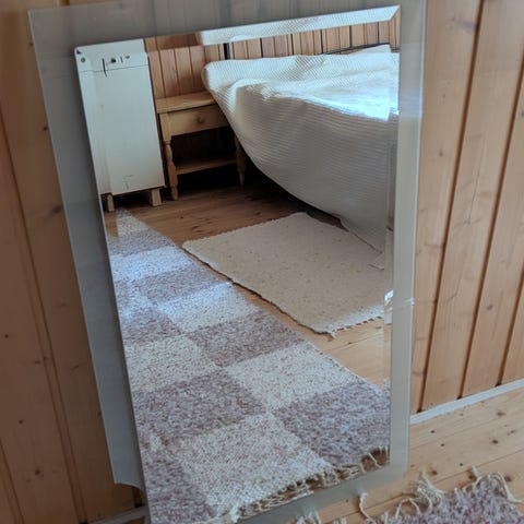 Puukehyksinen peili.