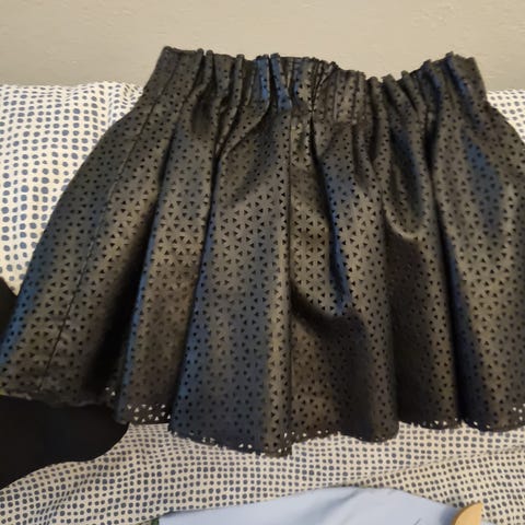 Name it tyttöjen hame, koko 128. Väri musta ja materiaali polyesteri. Hameessa on vyötäröllä kuminauha ja laskoksia, jotka antavat väljyyttä helmaan. Sopii arki- ja juhlakäyttöön. Pesuohjeiden mukaan tummat värit pestään erillään ja tuote pidetään loitolla avotulesta.