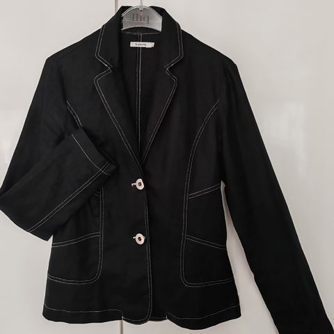 Naisten pellava-viskoosijakku koossa L. Väri on valkoinen, jossa on tummalla piirretty kukkakuvio kauttaaltaan. Materiaali on hengittävä ja kevyt. Jakussa on pitkät hihat ja etupuolella solmittava nauha. Sopii arkikäyttöön ja kerrospukeutumiseen. Haku Markulantieltä Turusta. Myynnissä myös muualla.