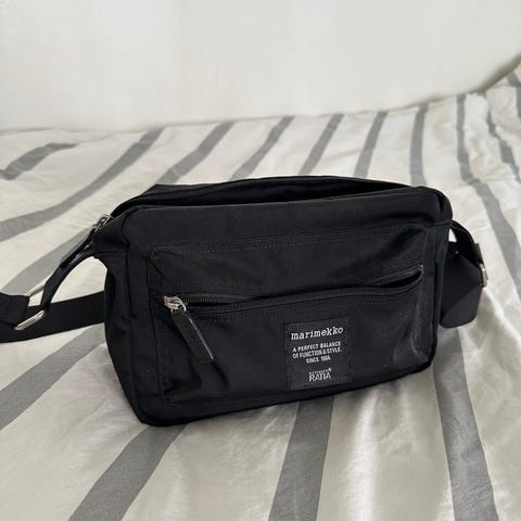 Marimekon My things laukku metsänvihreässä värissä jota ei enää myynnissä. Laukku ollut vähällä käytöllä ja todella siistissä kunnossa. Takana yksi pieni tahra joka näkyy kuvissa.