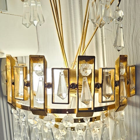Näyttävä ja ajaton Turun kristallin riippuvalaisin. Vanha vintagevalaisin, joka edelleen erinomaisessa kunnossa. Suoraan käytöstä -joten kaikki osat paikoillaan ja kunnossa