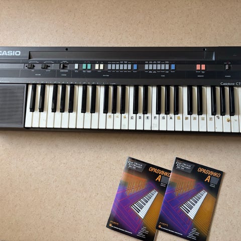 Lasten leikkisähköpiano, kolme mustaa näppäintä kadonnut, uudet patterit laitettu