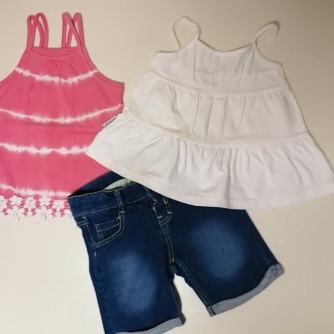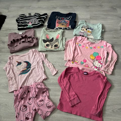 Myydään siisti ja hyväkuntoinen vaatepaketti koossa 110. Sisältää laadukkaita merkki- ja DIY-vaatteita.