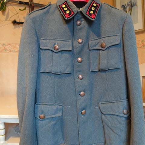 Myyn pois kaapista yksittäiset takit ja saadakseni rahaa. Tässä on jääkärikapteenin kevyt takki m/39-41 leijonasatiaisilla. Räätälin tekemä vuodelta 43 ja lappu löytyy taskusta nimellä. Harmi vain takissa on edessä reikiä ja muutama takana. Koin tekemiä otaksuen, muuten on takki varsin hyvässä kuosissa. Viat näkyvät ekoissa kuvissa. Kauluksessa sisäinen materiaali on outo, tuntuu kuin kumilta. En ole nähnyt tuota ratkaisua ennen.