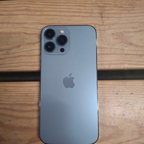 Apple iPhone 13 Pro Max, tallennustila 128 GB. Väri sininen. Laitteessa on kolmoiskamerajärjestelmä takana ja etukamera näytön yläreunassa. Mukana myyntipakkauksen laatikko ja USB‑C–Lightning‑latauskaapeli kuvien mukaisesti. Takana yhdessä kamerassa halkeama ja takana ylhäällä lasi vähän haljennut. Näytössä ei yhden yhtä naarmua, aina pidetty panssarilasia, nyt otettu pois. Akun kunto 79%, kestänyt minulla päivän nyky kunnossa.