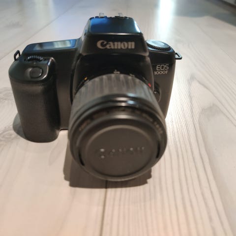Canon EOS 300 filmikamera 35 mm kinofilmille. Hopean ja mustan värinen runko, jossa Canon EF -objektiivikiinnitys. Kamerassa on automatiikat ja täydet käsisäätömahdollisuudet, sisäänrakennettu salama sekä LCD-näyttö päällä asetusten tarkasteluun. Canon EF 50mm f1.8 objektiivi sopii digikameroihin myös, full framelle 50mm ja aps-c kameroihin hitusen zoomatumpi vaikutelma.