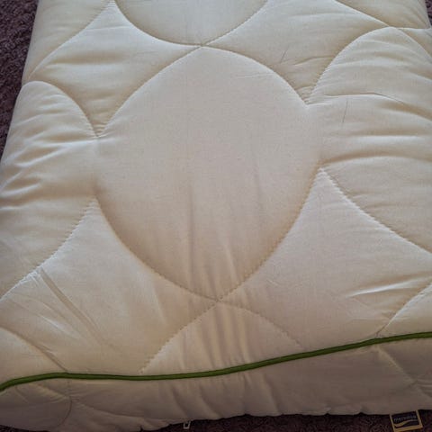 Muotoiltu tyyny suunniteltu kyljellään nukkuvalle. Käyttämätön.
