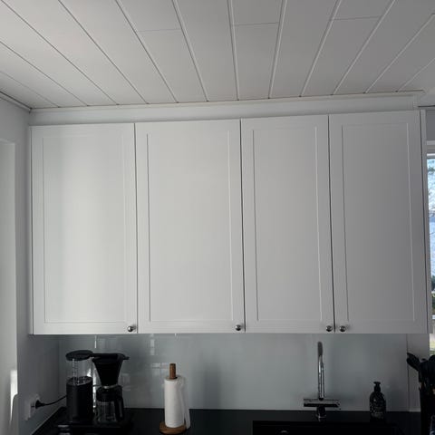 Korkeakiilto valkoinen keittiön kaapit + peitelevyjä + ovia