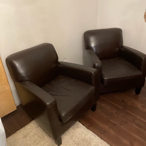 Mitat: leveys, 92cm, syvyys 96cm, kork. 83cm. Nojatuolit voi laittaa vierekkäin sohvan tapaan tai erikseen. Hyväkuntoiset. 100€ kpl