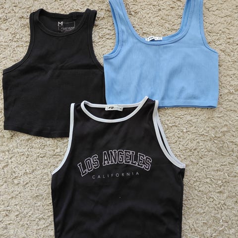 4 kpl toppeja. Punaisen eri sävyjä. Kapeat olkaimet. 1 kpl Inspire XL aniliini, 1 kpl Inspire XL punainen, 1 kpl Esmera L aniliini ja 1 kpl Chanelle XL punainen. Käyttämättömiä. Yhteishintaan 30e tai erikseen 8e/kpl. Pm. 8 90e.