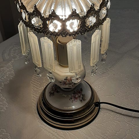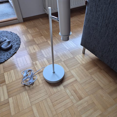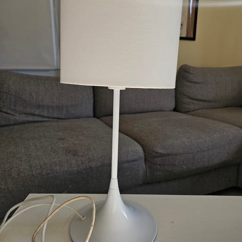 Oranssilla savijaloilla olevat pöytälamput. Parina.Vain nouto.