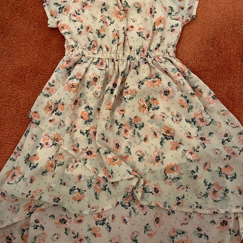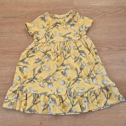 Lindexin lyhythihainen mekko koossa 98. Uutena ostettu ja yhdellä muutaman kerran käytetty. Värit uudesta haalistuneet, vaaleat kohdat tummuneet ja pinnassa pesuhaitua.