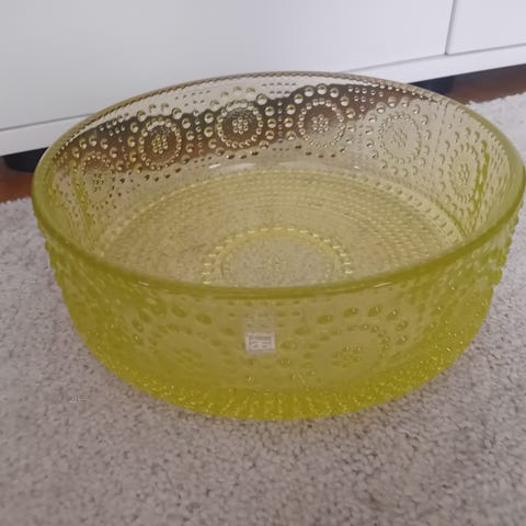 Riihimäen lasin Grapponia kulho. Väri neodyymi ja halkaisija 20 cm sekä korkeus 7,5 cm.