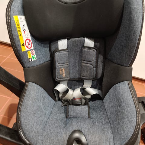 Musta istuin, jossa viisipistevaljaat ja pehmustetut olkatuet. Istuimessa on Isofix-kiinnitys, kallistussäätö sekä tukijalka. Istuin kääntyy alustassaan 360 astetta. Turvaistuin ikäryhmälle 61 – 105 cm (3 kuukautta – 4 vuotta | ≤ 18 kg).