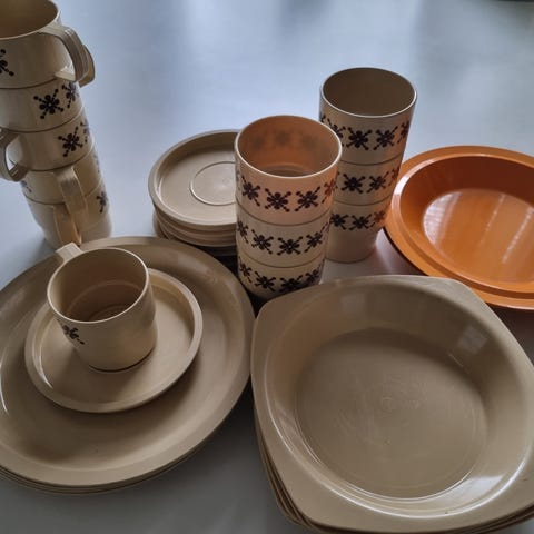 Myydään joko pakettina tai osissa iso määrä Fiskamin ja Sarviksen ( Kaj Franckin) astioita. + 6 kpl tanskalaisia munakuppeja. Fiskaminit 3 €/ kpl tai kaikki yhteensä 100 €, noudettuna. Munakupit 10 €. Sarvikset käyttämättömät 3 € /kpl, 1.5 € käytetyt. Saa myös tarjota. Pienempiä eriä postin kautta. Fiskaminit : 6 kpl punaisia kuppeja lautasineen, 8 kpl isoja punaisia lautasia, 3 kpl oransseja isoja, 1 kpl oranssi pyöreä, 4 kpl oranssia js 2 kpl punaisia suorakaiteen muotoista, 4 kpl oransseja kupin aluslautasta, yksi pienempi syvä punainen lautanen. Sarvikset 6 kpl käytettyjä valkoista, 3 kpl käyttämätöntä valkoista ja 1 kpl mustia ruokalautasta.