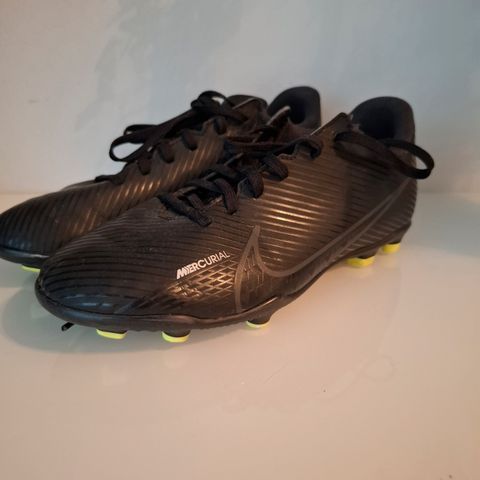 Nike jalkapallokengät musta kultainen koko 37,5 sisämitta n. 21,5 cm. Kengissä on nauhakiinnitys ja nilkkaa tukeva sukkamainen varsi. Pohjassa on nappulat jalkapallon pelaamiseen luonnonnurmella tai tekonurmella. Väritys on musta kultaisilla yksityiskohdilla ja Nike-logolla. Sopivat jalkapallon harrastamiseen ja harjoitteluun.