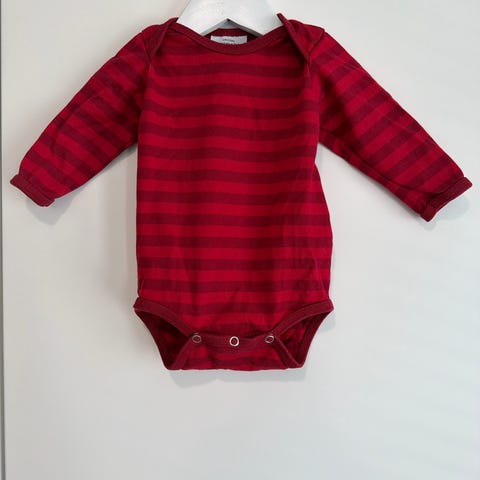 Pitkähihainen unisex-mallinen body, jossa punavalkoiset raidat. Materiaalina puuvilla.