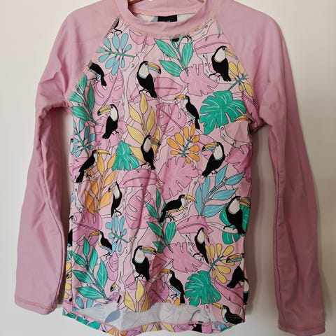 Myydään persikanvärinen pitkähihainen uv-uikkari. Ehjä, tahraton, hyvä kunto. Koko122/128.