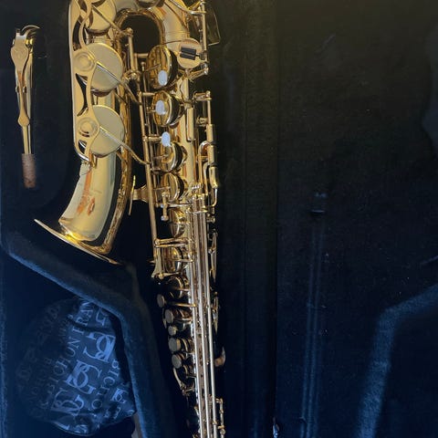 Mukaan kova laukku, soittolehti, kaulahihna sekä suukappale Yamaha 6C.